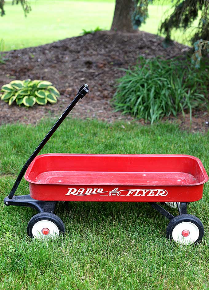 I had a Radio Flyer growing up. My brother and I had some great times in that little wagon. We would pull it up the hill in our backyard and ride the wagon down, using the handle to steer it to the bottom. It goes without saying that we also had some epic wrecks in the old Radio Flyer, like the time my brother road that old wagon over the 3 foot retaining wall. He was too little to effectively stop the out of control Radio Flyer by putting down his feet.